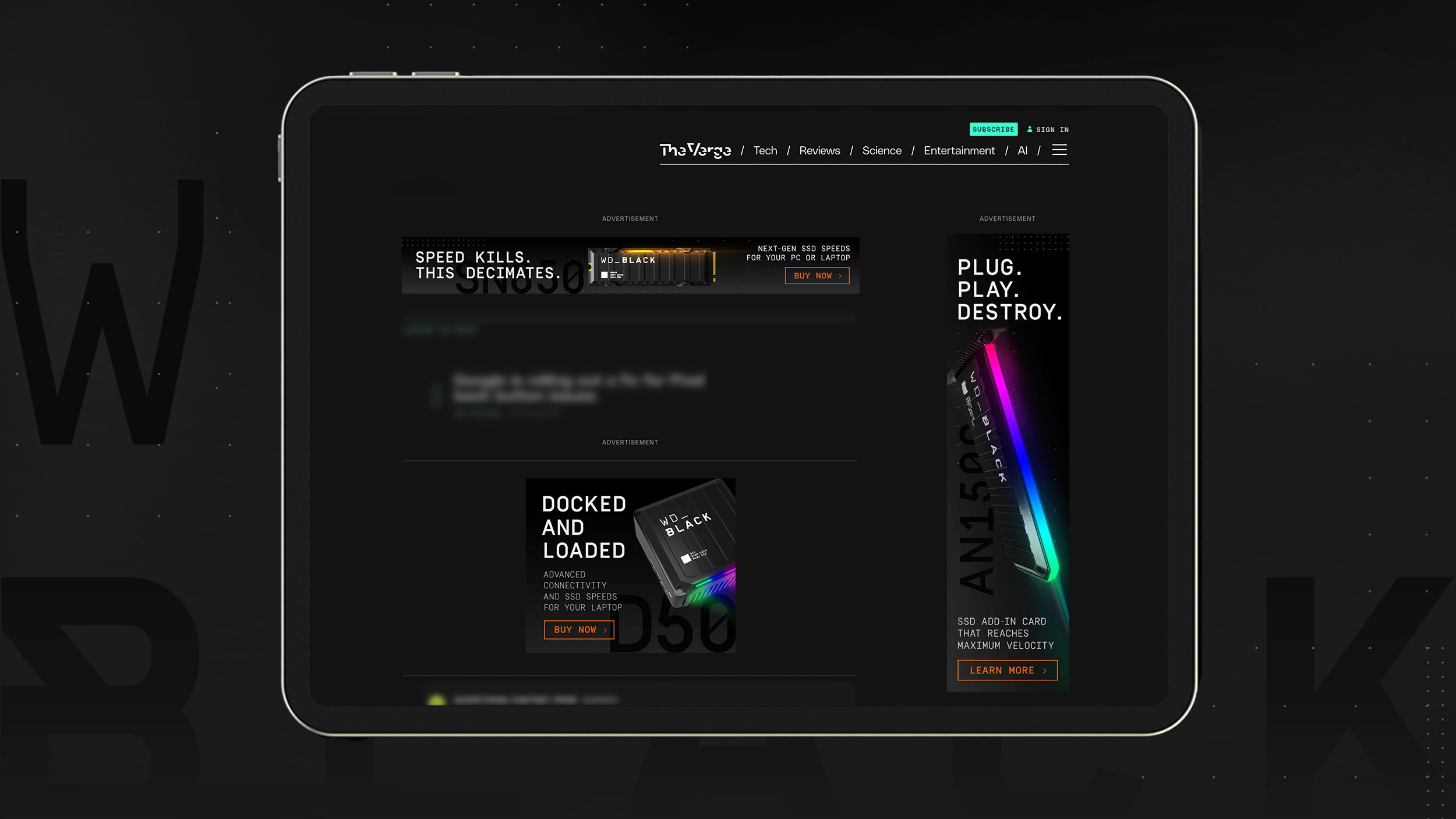 Our mission was to design a campaign that conveyed the unparalleled speed and power of these drives, while also highlighting the customizable RGB lighting feature that was new to the brand. WD_BLACK had never used color before, so we took care to integrate it into the campaign in a way that was sure to win over even the most discerning gamers, while still making sense with the rest of their lineup. The launch deliverables included point of sale, out of home, website, print, video, trade show graphics, datasheets, banner ads, Amazon pages and email.